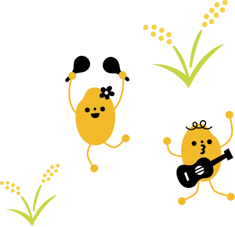 まるがふたつ重なったような形からギターを持っているにこまる。のんびりや。